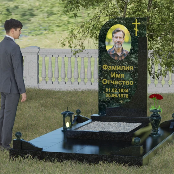 Кому подойдет: Данная модель является универсальной и гармонично впишется в мемориальный комплекс как для мужчины, так и для женщины. Асимметричная форма с плавным изгибом придает памятнику определенную легкость, что часто выбирают для оформления захоронений матерей или жен. В то же время строгая вертикальная колонна и золоченая символика делают его подходящим для увековечивания памяти отца, брата или главы семейства. Это выбор тех, кто ценит эстетику минимализма, надежность натуральных материалов и хочет подчеркнуть преемственность поколений и крепость семейных уз.