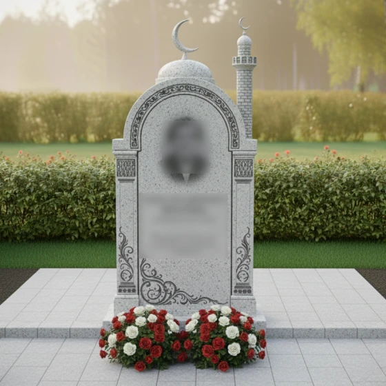Форма арки в данной композиции глубоко символична: она олицетворяет небесные врата и переход в вечный мир, дарующий душе долгожданный покой. Купол и минарет подчеркивают религиозную принадлежность и духовную крепость веры усопшего. Цветочный орнамент у основания символизирует добрые дела и те ростки светлой памяти, которые остаются в сердцах близких. Это изваяние словно защищает покой близкого человека, создавая вокруг него атмосферу умиротворения и божественной защиты.
