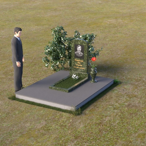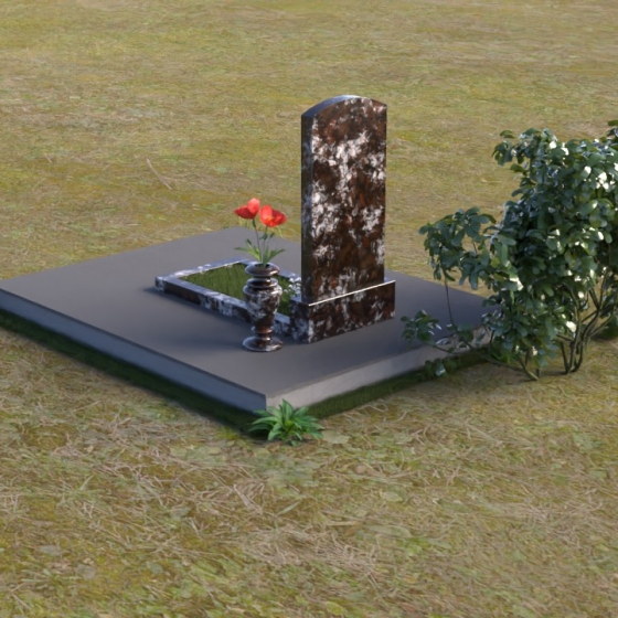 Благодаря своей лаконичной форме, эта стела предоставляет широкие возможности для оформления. Портрет усопшего будет гармонично смотреться как в верхней части стелы, так и чуть ниже центра. Золотое тиснение имени и дат жизни будет элегантно выделяться на фоне полированного камня, создавая четкий и легко читаемый образ. Небольшая тумба, расположенная перед стелой, может служить местом для возложения цветов и памятных вещей. Мы рекомендуем выбирать для этой модели сдержанные, лаконичные шрифты, которые подчеркнут общую элегантность композиции. Подумайте о возможности добавления небольшого бронзового барельефа или скульптуры, отражающей профессию или увлечения ушедшего человека. Это добавит индивидуальности и сделает место памяти еще более личным и значимым. Ваза, выполненная в едином стиле с монументом, завершит композицию и придаст ей законченный вид.