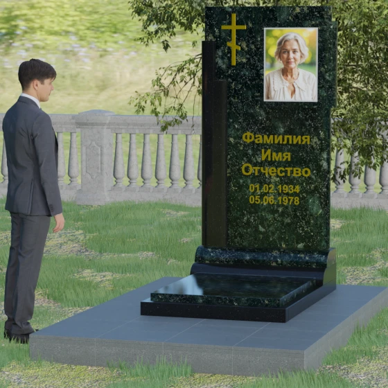 Устойчивость композиции обеспечивает массивный каменный цоколь (подставка), который надежно удерживает стелу и придает всему комплексу завершенность. Мы рекомендуем дополнять данную модель сплошной надгробной плитой из того же материала. Это не только создает эстетически целостный ансамбль, но и значительно упрощает уход за местом захоронения, избавляя от необходимости борьбы с сорной травой и поддерживая безупречный порядок на участке.