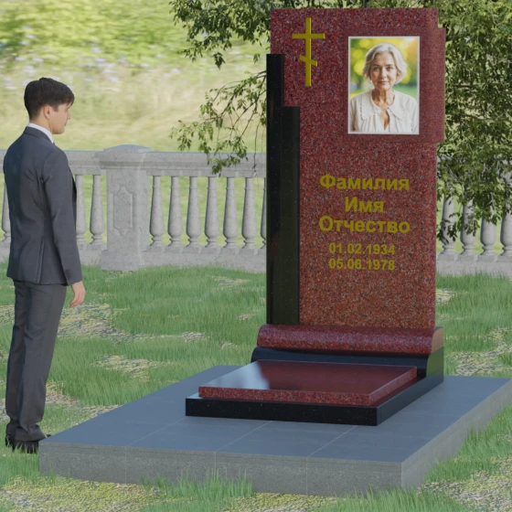 Кому подойдет: Данная модель является универсальной и достойной. Благодаря строгим линиям и возможности выбора цветовых сочетаний, она станет прекрасным выбором для оформления мужского захоронения, подчеркивая твердость характера и статус. В то же время, при использовании более светлых или теплых оттенков камня (например, Мансуровского гранита или мрамора Тассо), памятник приобретает мягкость и изящество, становясь трогательным символом памяти о женщине или дорогом родителе. Это выбор тех, кто ищет баланс между религиозными традициями и современной эстетикой мемориальной архитектуры.
