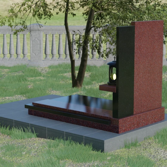 Кому подойдет: Данная модель является универсальной благодаря своему лаконичному и одновременно глубокому дизайну. Она станет достойным выбором как для мужчины, так и для женщины. Строгость линий и золотые акценты подчеркнут статус и мужество, а плавные изгибы верхней грани привнесут нотки женственности и нежности. Этот мемориал выбирают те, кто хочет выразить глубокое уважение и создать на кладбище место, преисполненное достоинства и тишины, где каждый элемент — от лампады до фактуры камня — говорит о вечной любви.