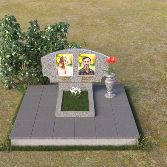 Эта мемориальная композиция, артикул ПГ023, воплощает собой сдержанную элегантность и глубокое уважение к ушедшим. Ее плавные, скруглённые линии словно рассказывают историю жизни, полной взлетов и падений, радостей и печалей, и теперь нашедшей свой покой. Верхняя часть стелы имеет мягкий, дугообразный изгиб, напоминающий о небесном своде, под которым души обретают вечный приют. Зеркальная полировка камня отражает свет, создавая ощущение легкости и воздушности, а контраст с матовой поверхностью гравировки портретов придает изображению глубину и выразительность. Простота формы не отвлекает от главного – светлых образов тех, кто дорог нашему сердцу.