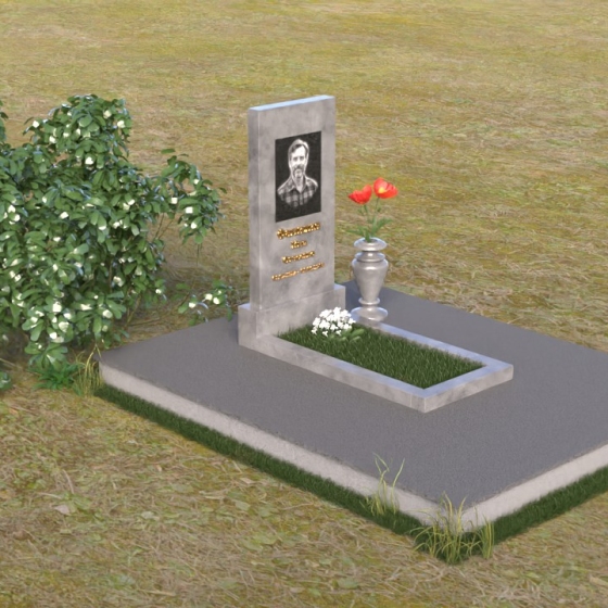 Прямоугольная форма стелы, выбранная для этой мемориальной композиции, несет в себе глубокий символизм. Она олицетворяет покой, защиту и вечность. Строгие линии и четкие грани говорят о силе духа и нерушимости памяти. Вертикальное направление стелы символизирует стремление к высшему, к духовному миру, а горизонтальная плита, отражающая свет, напоминает о том, что жизнь продолжается, несмотря на утрату. Композиция в целом создает ощущение умиротворения и светлой печали.